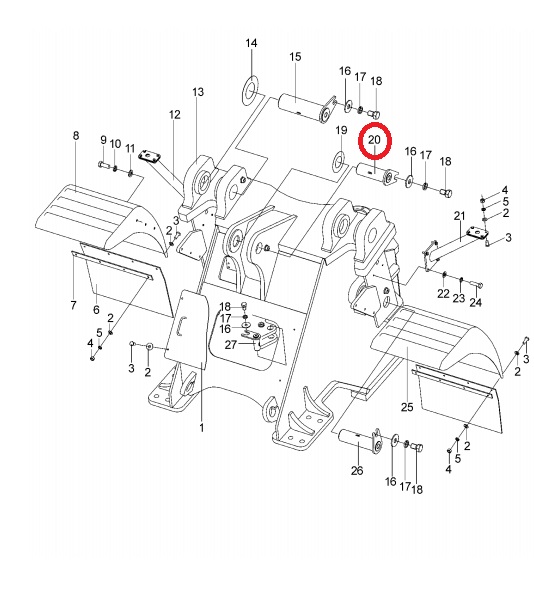 نقش کلیدی در Pivot سیلندر باکت برای انتقال بارهای برشی و خمشی.