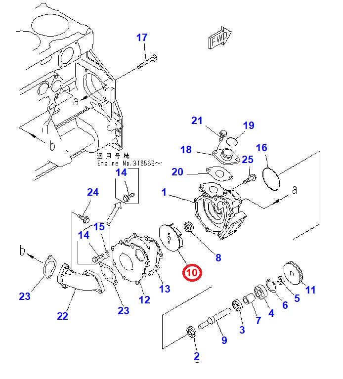 آب پخش کن واتر پمپ موتور کوماتسو SAA6D125E-3