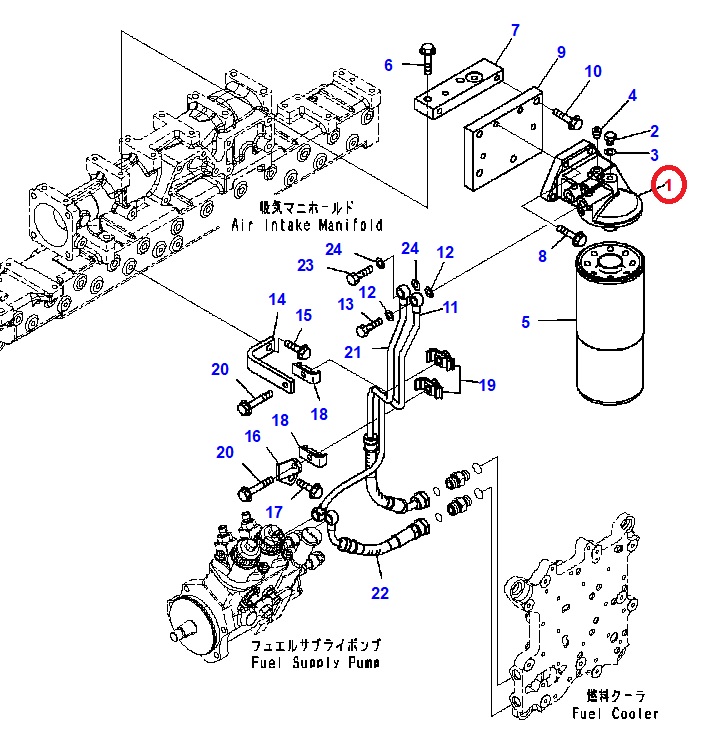پایه فیلتر گازوئیل موتور کوماتسو SAA6D125E-5
