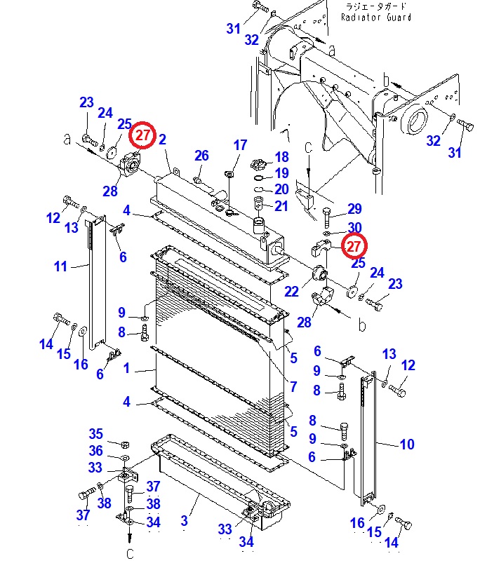 درب دو پیچ نگه دارنده بالا رادیات بلدوزر کوماتسو D275A-5