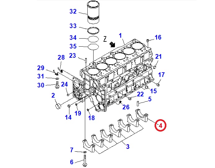 کفی ثابت دهانه 7 بلوک سیلندر موتور کوماتسو SAA6D140E-3