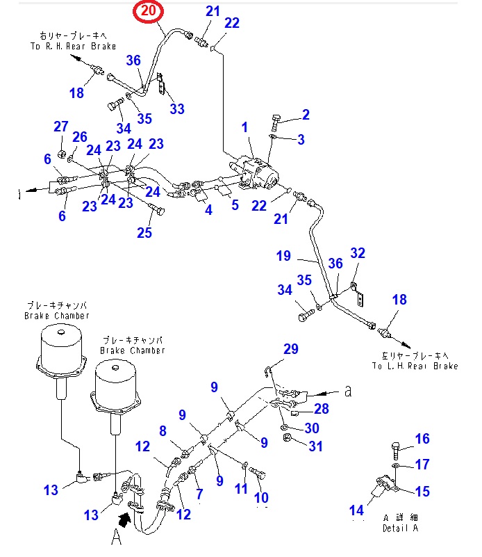 لوله ترمز عقب ( راست ) دامتراک کوماتسو HD325-6