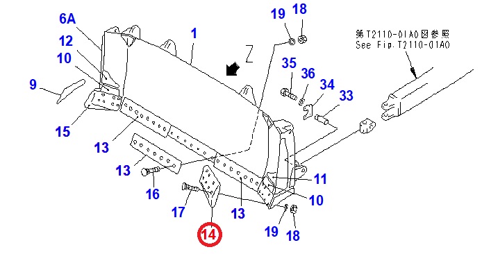 گوشه تیغ سمت چپ بلدوزر کوماتسو D155A-2 کمان استریت